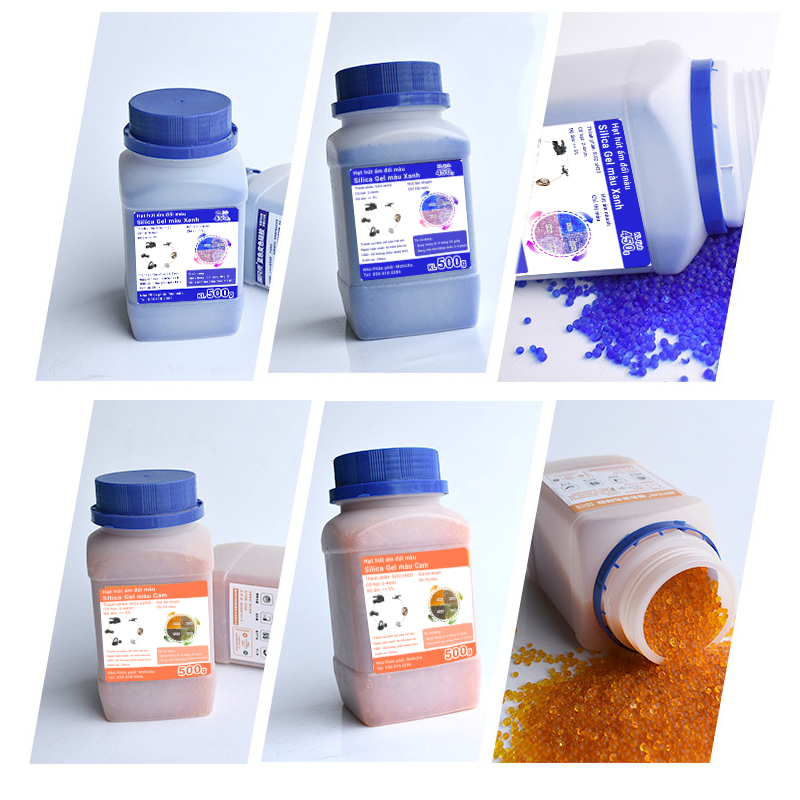 Hạt hút ẩm Silica Gel đổi màu hút ẩm nhanh, có thể tái sử dụng nhiều lần, đóng gói tiện dụng Có 02 màu: Silica Gel Xanh và Silica Gel Cam